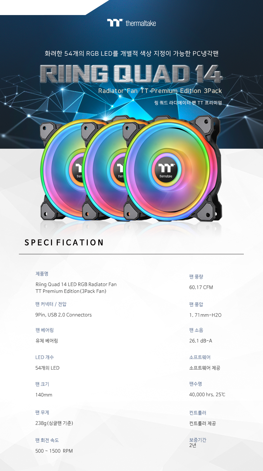 Riing Quad 14 RGB 라디에이터 팬 TT 프리미엄 에디션 (3PACK/Controller)