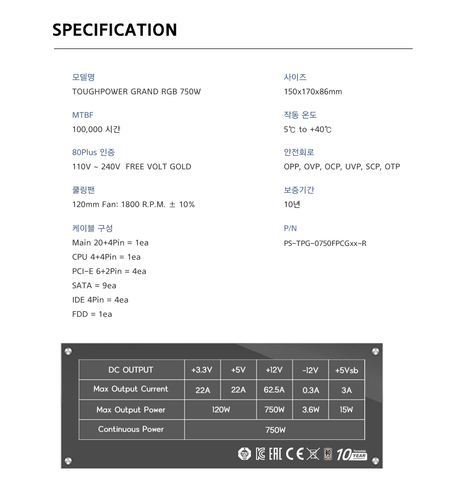 터프파워 그랜드 RGB 750W 골드 풀 모듈러