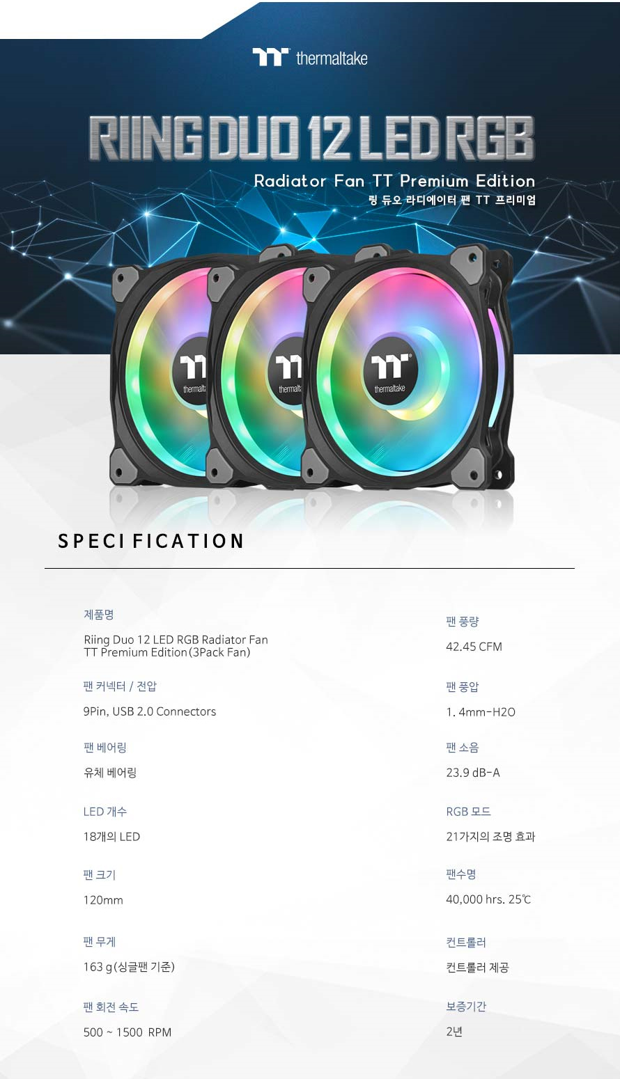 Riing Duo 12 RGB 라디에이터 팬 TT 프리미엄 에디션