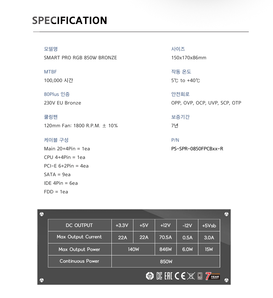 A/S 보증기간 : 7년