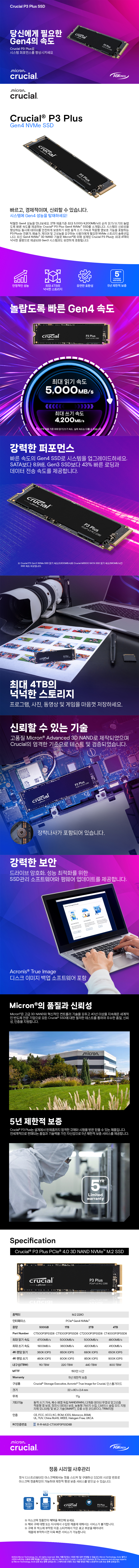 500GB / 1TB / 2TB / 4TB (통합) A/S 보증기간 5년 제한적 보증 500GB_CT500P3PSSD8 1TB_CT1000P3PSSD8 2TB_CT2000P3PSSD8 4TB_CT4000P3PSSD8