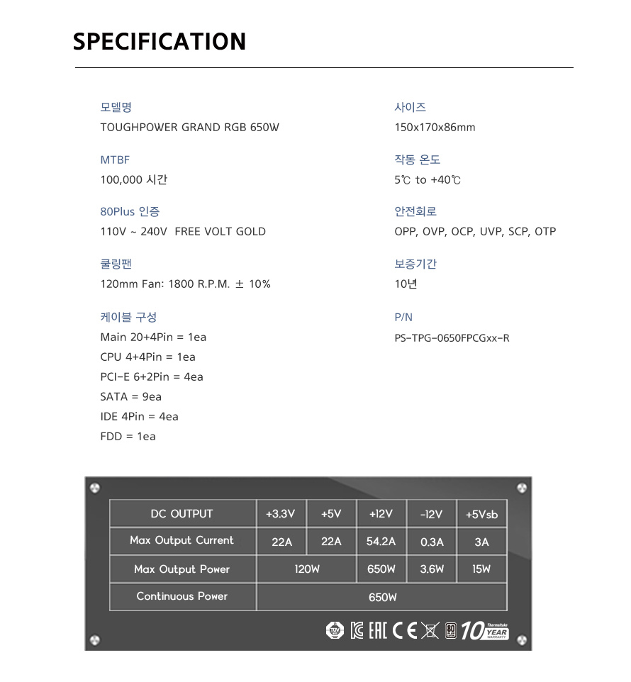 터프파워 그랜드 RGB 650W 골드 풀 모듈러