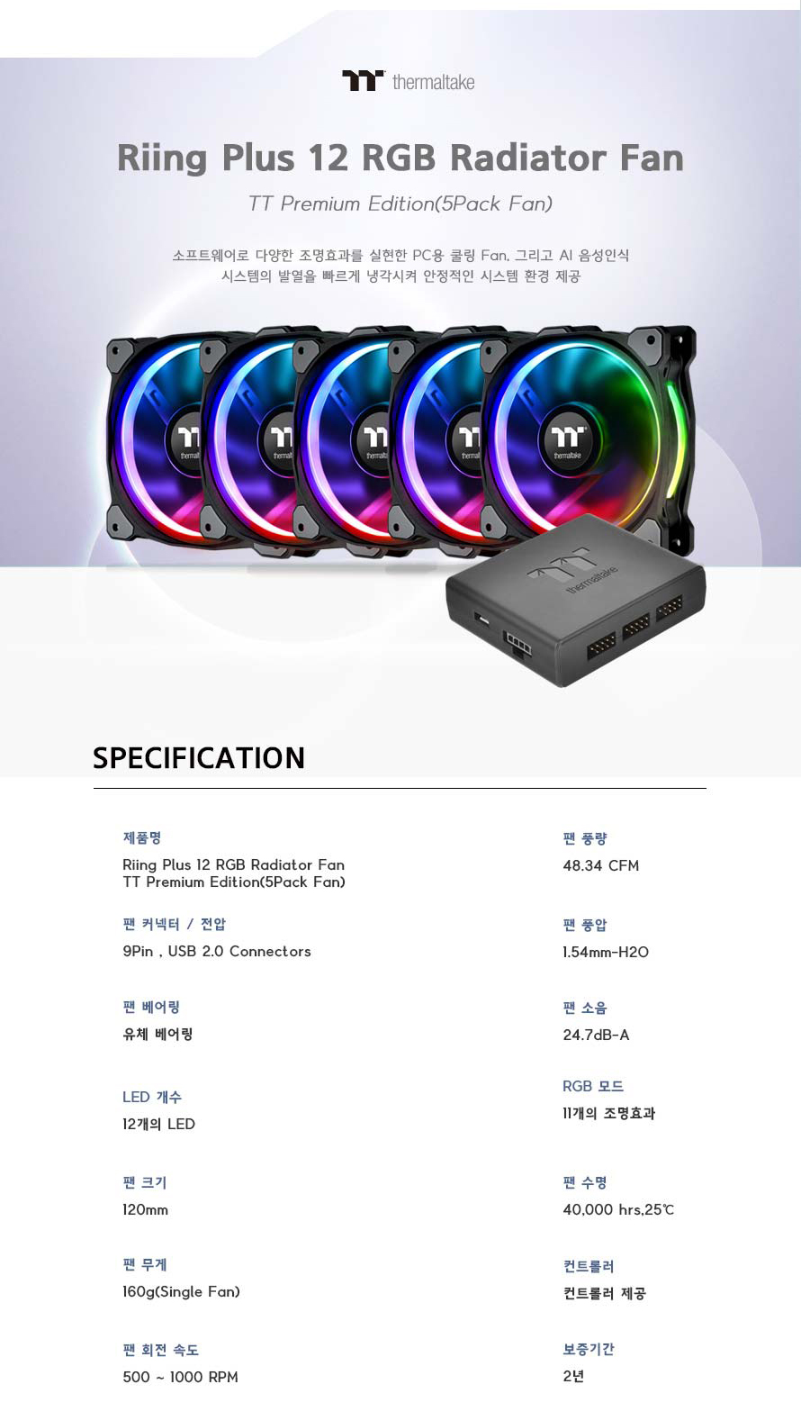 Riing Plus 12 RGB TT 프리미엄 에디션 (5PACK/Controller)