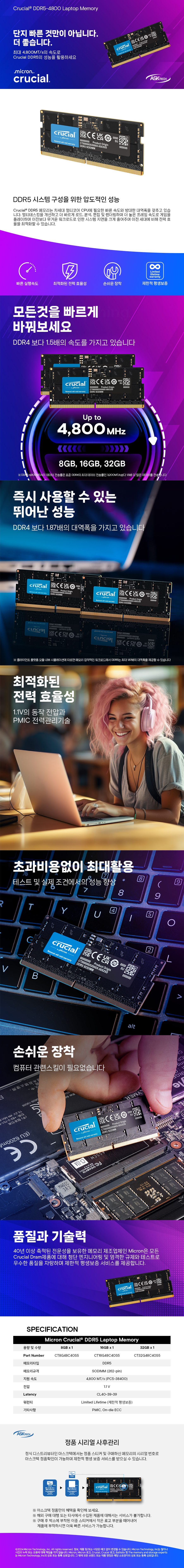 마이크론 Crucial 노트북 DDR5-4800 CL40