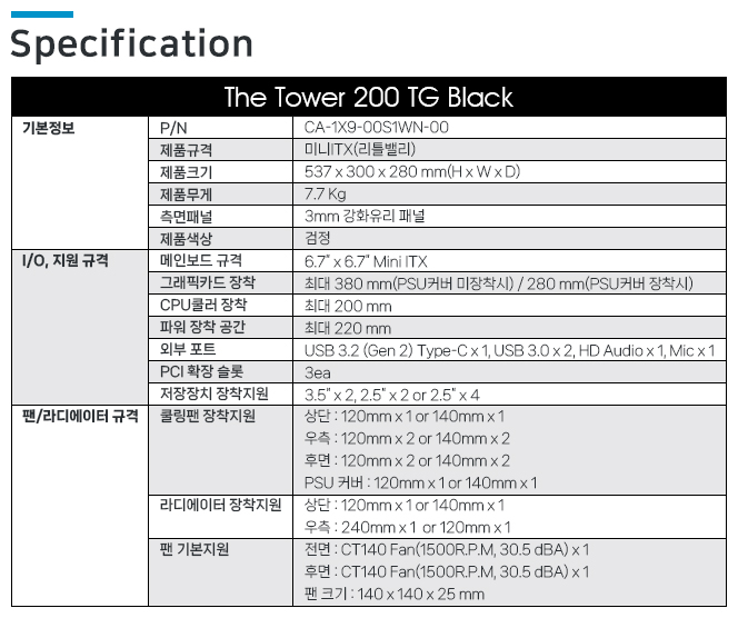 써멀테이크 The Tower 200 TG (Black)