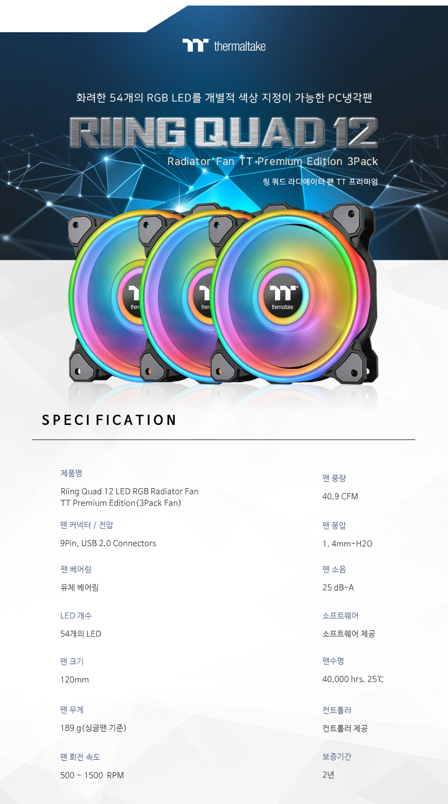 Riing Quad 12 RGB 라디에이터 팬 TT 프리미엄 에디션 (3PACK/Controller)