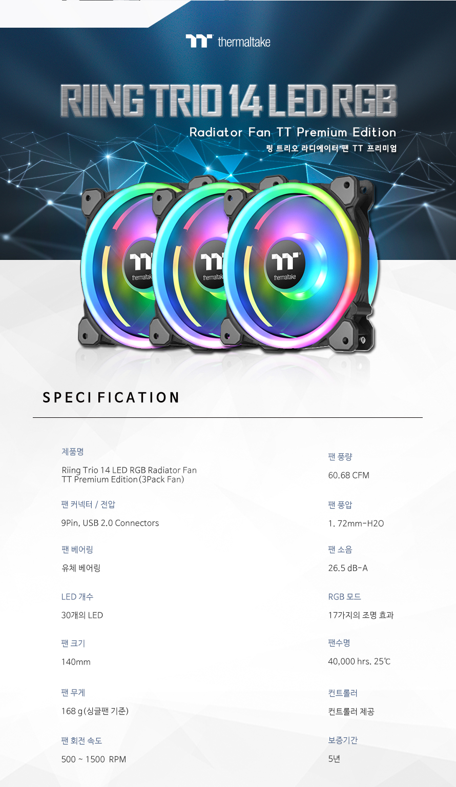 Riing Trio 14 RGB 라디에이터 팬 TT 프리미엄 에디션 (3PACK/Controller)